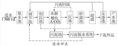 設(shè)計(jì)處理規(guī)模1500m3/d,回用水量800m3/d,回用率50%以上。